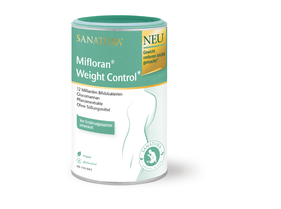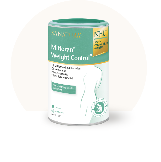 Mifloran® Weight Control* enthält in Kombination mit Glucomannan und weiteren Zutaten den speziellen Bifidobakterien-Stamm Bifidobacterium lactis B420. Er ist wie alle Sanatura® Milchsäure-bakterienkulturen magensäure- und gallensaftresistent. Bifidobacterium lactis B420 siedelt sich sehr gut im Dickdarm an und unterstützt dort eine intakte Darmbarriere. In einer wissenschaftlichen Studie konnte gezeigt werden, dass Bifidobacterium lactis B420 die Körperfettmasse, den Taillenumfang, die Energieaufnahme und das Körpergewicht im Vergleich zur Placebogruppe reduzierte. Veränderungen der Fettmasse waren in der Bauchregion am stärksten ausgeprägt und zeigten sich auch in Veränderungen des Taillenumfangs. Darüber hinaus war die Menge an Akkermansia muciniphila, eine Bakterienart, die mit magerem, gesundem Körpergewicht in Verbindung gebracht wird, nach einer Supplementierung mit Bifidobacterium lactis B420 im Darm deutlich erhöht. Gekürzt, Finaler Text folgt